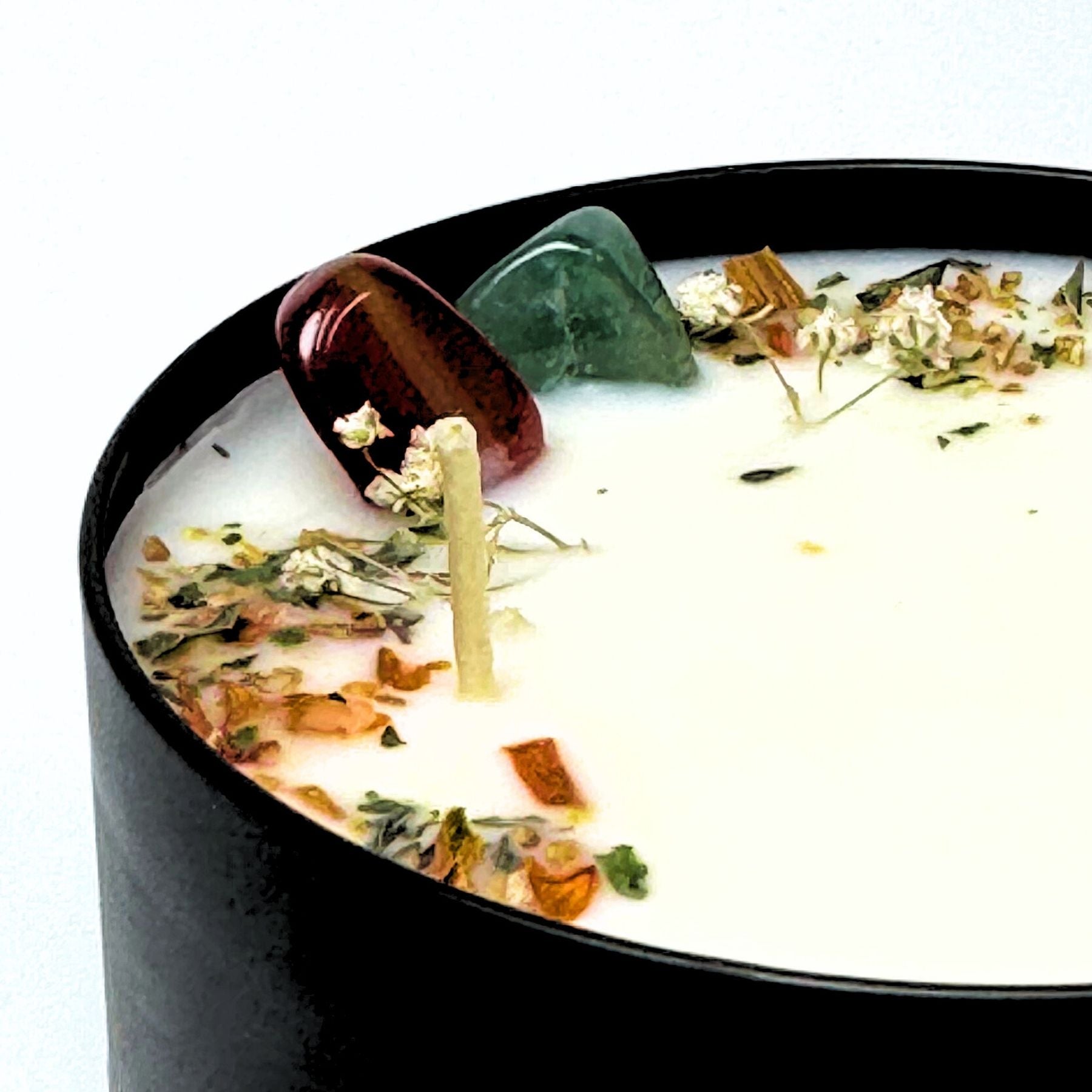 Crafted with intention, this candle is infused with energetically aligned crystals to support grounding, abundance, and harmony with nature. Once the candle has burned down, these stones can be cleansed and kept as sacred keepsakes or placed on your altar.