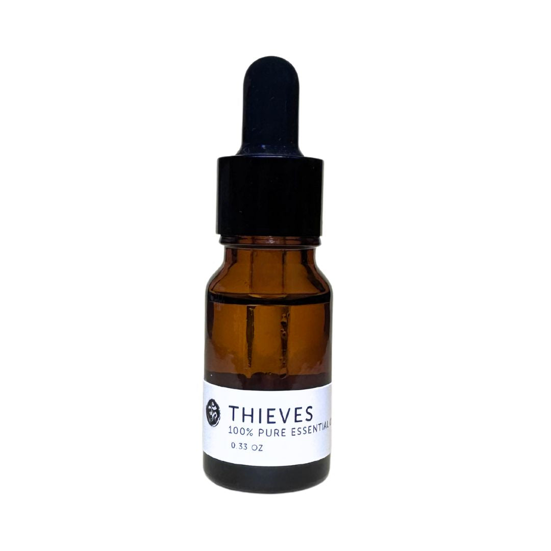 Inspired by a legendary herbal formula dating back to the 15th century, Thieves Essential Oil Blend is a powerful synergy of clove, cinnamon, eucalyptus, rosemary, and lemon oils. Deeply aromatic and naturally protective, this spicy-citrus blend is revered for its ability to cleanse the air, support immunity, and bring warmth to both body and spirit. It’s a timeless remedy for modern wellness—grounded in tradition and backed by nature.