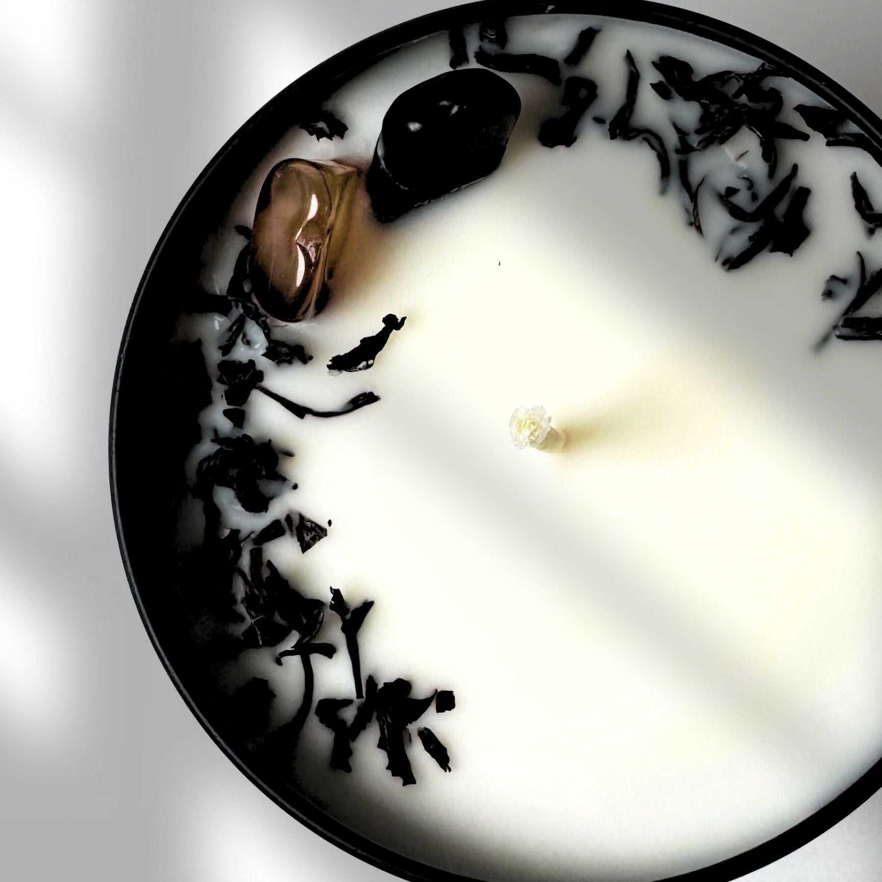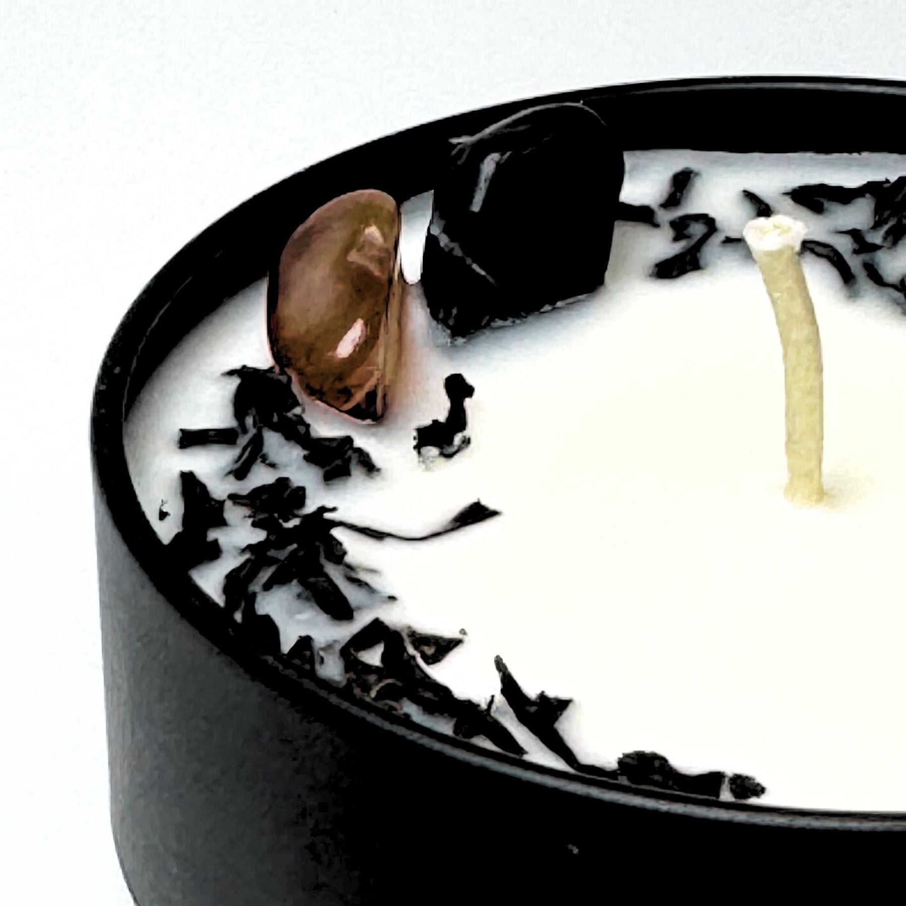 Crafted with intention, this candle is infused with energetically aligned crystals to support grounding, refinement, and personal empowerment. Once the candle has burned down, these stones can be cleansed and kept as sacred keepsakes or talismans of strength and calm.
