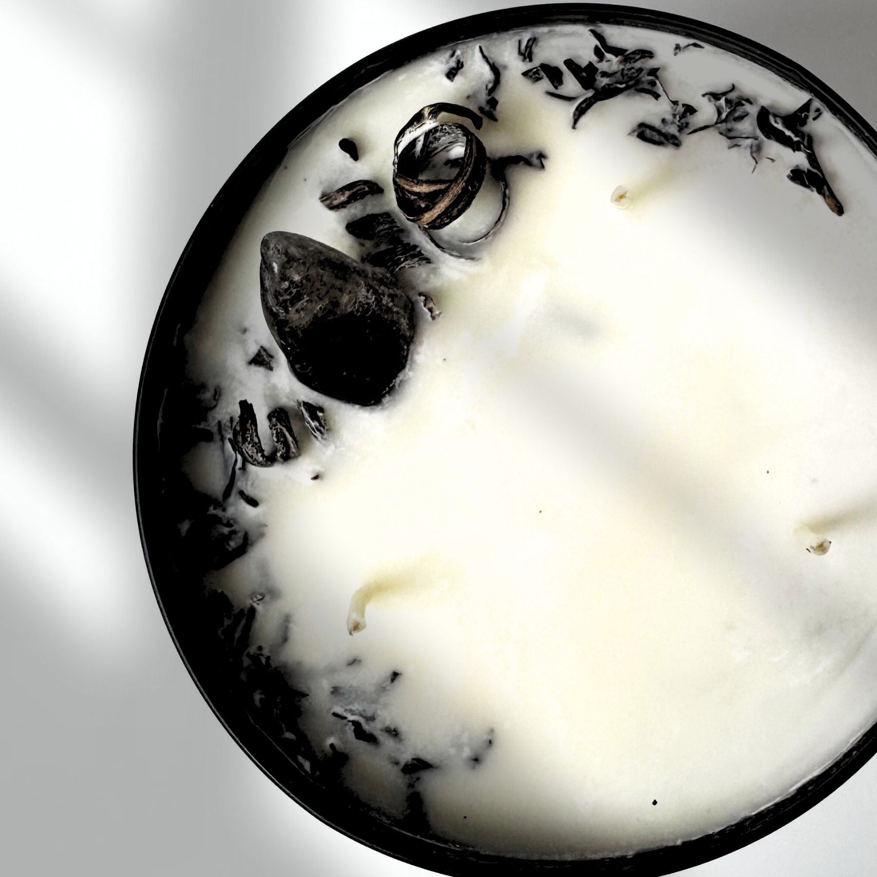 Crafted with intention, this candle is infused with energetically aligned crystals to enhance sensuality, confidence, and beauty. Once the candle has burned down, these stones can be cleansed and kept as loving reminders of your worth and radiance.